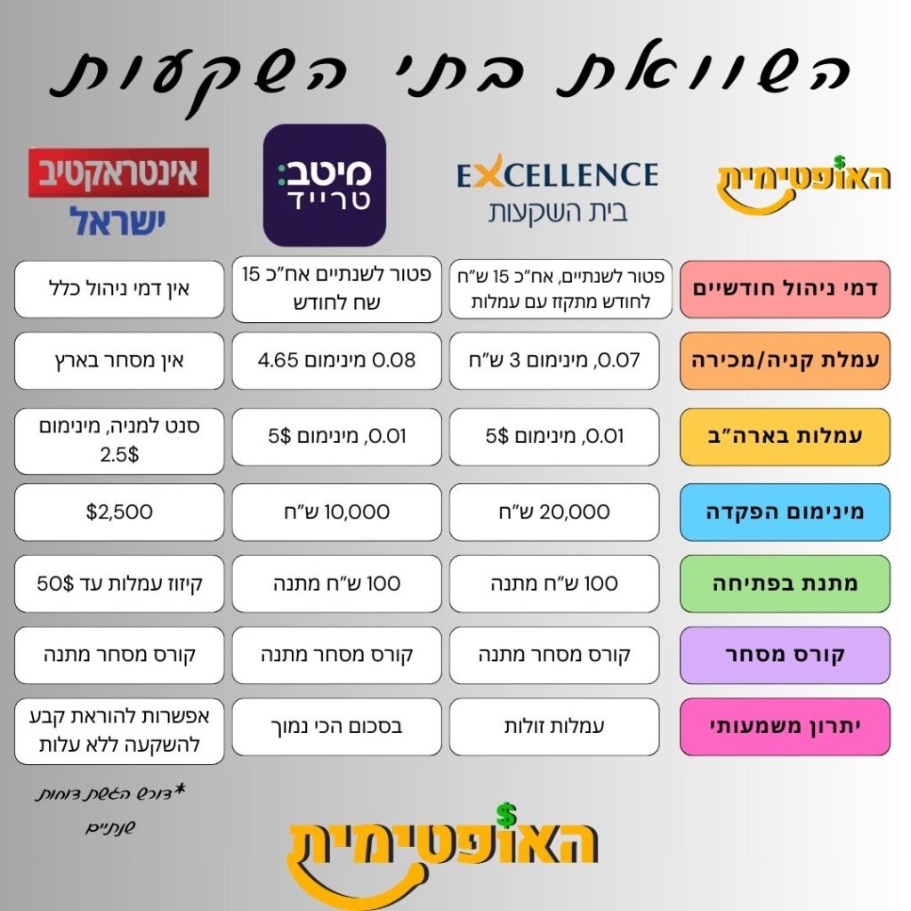 1. אם יש לך 20,000 ש”ח ומעלה להשקיע – ההטבה של אקסלנס טרייד הכי משתלמת מבחינת עמלות והכי נוחה מבחינת תפעול. לפתיחת חשבון יש ללחוץ כאן.